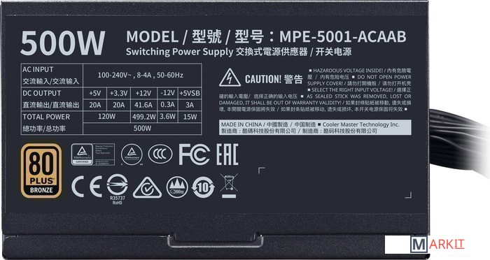 Markit » Блоки питания » Блок питания Cooler Master MWE 500 Bronze V2 MPE-5001-ACAAB-EU