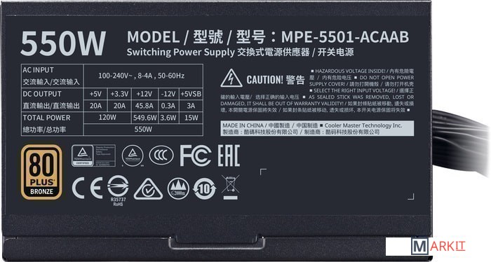 Markit » Блоки питания » Блок питания Cooler Master MWE 550 Bronze V2 MPE-5501-ACAAB-EU