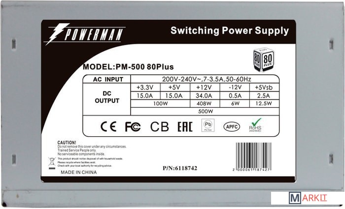Markit » Блоки питания » Блок питания Powerman PM-500ATX 80Plus