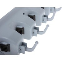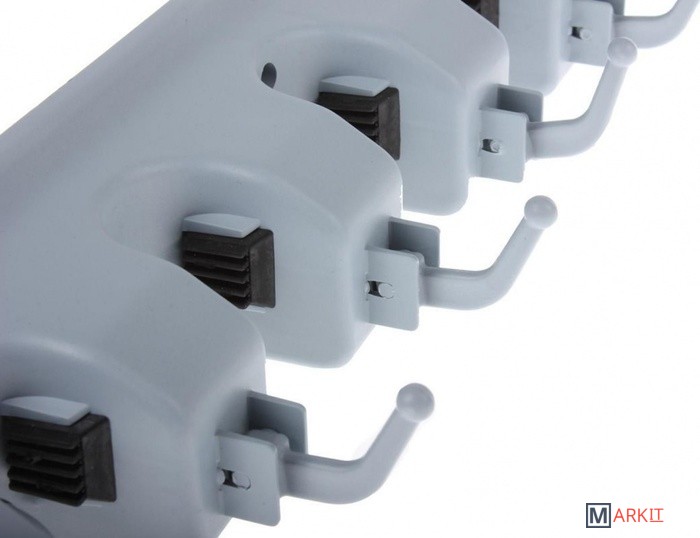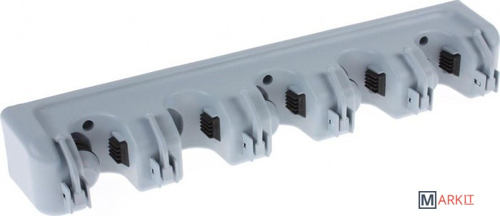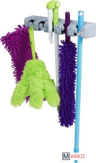 Держатель для швабр настенный сэкономит место для хранения бытовых и хозяйственных принадлежностей. Дизайн крепления позволяет организовать все швабры, щетки и совки в одном месте. Регулируемые резиновые ролики надежно фиксируют ручки инвентаря, а на дополнительных крючках можно разместить полотенца, мочалки и прочую мелкую утварь. Преимущества: ● Максимальная нагрузка 55 кг. ● 5 ячеек для щеток, швабр и совков. ● Регулируемый размер ячеек. ● Дополнительные крючки для полотенец, мочалок и салфеток. ● Рекомендованная нагрузка на одну ячейку до 5 кг, на один крючок до 3 кг.
