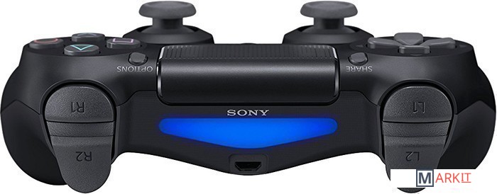 Беспроводной геймпад Dualshock4 второго поколения со встроенным акселерометром, сенсорной панелью, цветной световой панелью (отображает важные события и помогает камере PlayStation Camera отслеживать положение геймпада во время игры), а также с кнопкой SHARE для быстрой публикации достижений. Предназначен для игровой консоли Sony Playstation 4. Возможен захват перемещения геймпада в 6 направлениях