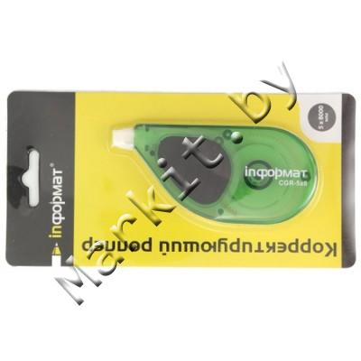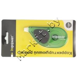 Корректирующий роллер с боковым ходом inФормат, размер ленты 5 мм x 8 м, корпус прозрачный зеленый Код: 33459