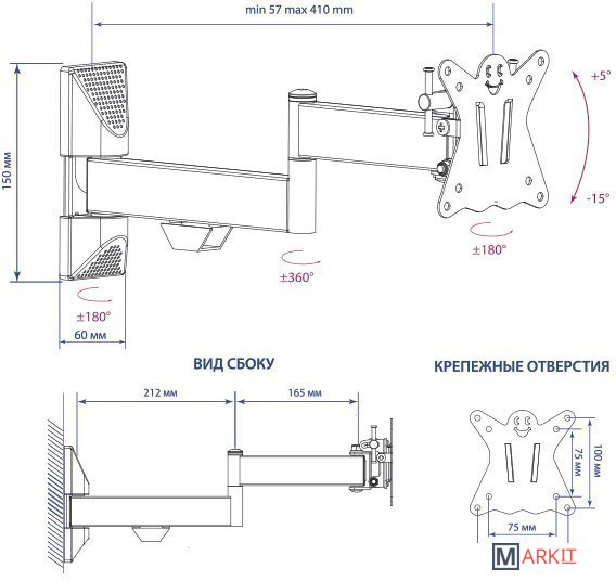 Расстояние от стены (потолка) 57 — 410 мм