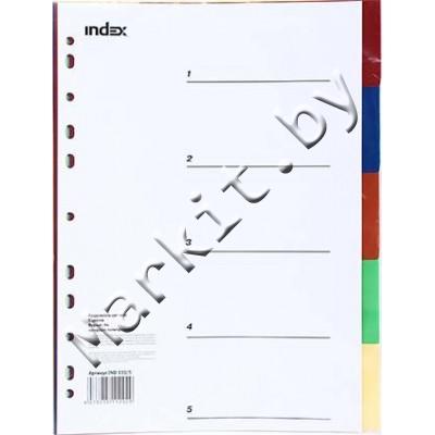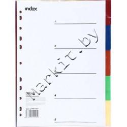 Разделители для регистраторов пластиковые Index, 5 л., индексы по цветам (без нумерации) Код: 32610