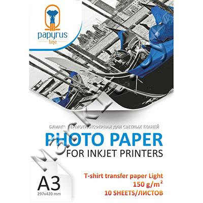 Термотрансферная бумага PAPYRUS серия T-SHIRT TRANSFER PAPER LIGHT, A3, 150 г/м2, 10 листов, односторонняя, для струйной печати (BN05529) Код: 17072