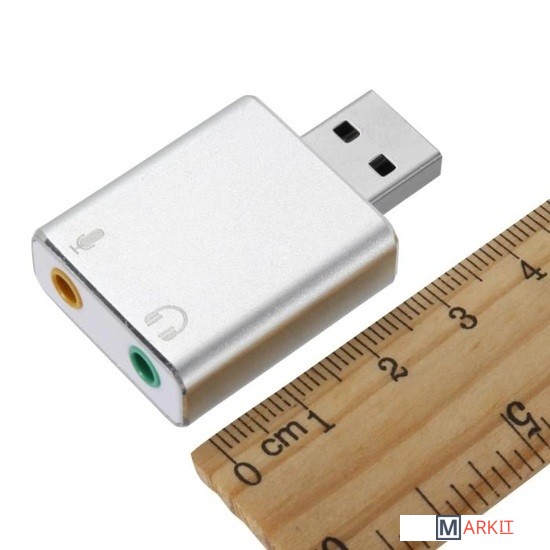 Внешняя звуковая карта USB 3D 2.1/7.1-канальная предназначена для подключения динамиков, колонок, наушников или микрофона через порт USB компьютера или ноутбука. Если у Вас не работает системная звуковая карта, некачественный звук или Вас не устраивает базовая громкость Ваших динамиков или в Вашей технике отсутствует порт jack 3.5mm, либо Вам необходимо подключить гарнитуру с микрофоном или отдельно микрофон, данный адаптер будет отличным решением данной задачи. Не предназначена для телевизора. Не требует установки драйвера.Характеристики:– поддержка колонок или наушников, функция записи микрофона; функция свободного переключения между режимами наушников и динамика;– поддержка файлов формата WAV / MP3 / WMA / MPEG1 (VCD) / MPEG2 SVCD) / AVI / DVD_Audio / DVD_AC3 / DVD_DTS / DiVX.– технология Xear 3D полностью поддерживает функции MS DirectX, EAX1.0 / 2.0, HRTF 3DX;– технология мультиплексирования для достижения 7.1-канального динамического звука;– поддержка трехмерного звука и виртуального 7.1-канальный.– функция микшера;– интерфейс USB2.0, адаптер совместим с интерфейсом USB3.0 и обратно совместим с версией USB1.1. Скорость передачи данных: 12 Мбит/с;– не требуется установки драйвера;– поддержка всех ОС: Windows 2000/XP/Server 2003/VISTA 7/8/10, Linux, Mac OS и др.;– размеры: 30*26*11 мм.Материал: алюминиевый сплав