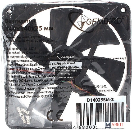Markit » Системы охлаждения » Вентилятор для корпуса Gembird D14025HM-3